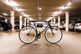 Life may not be all black and white, but the Mike certainly is, with classy gold hubs for just the right amount of swag.